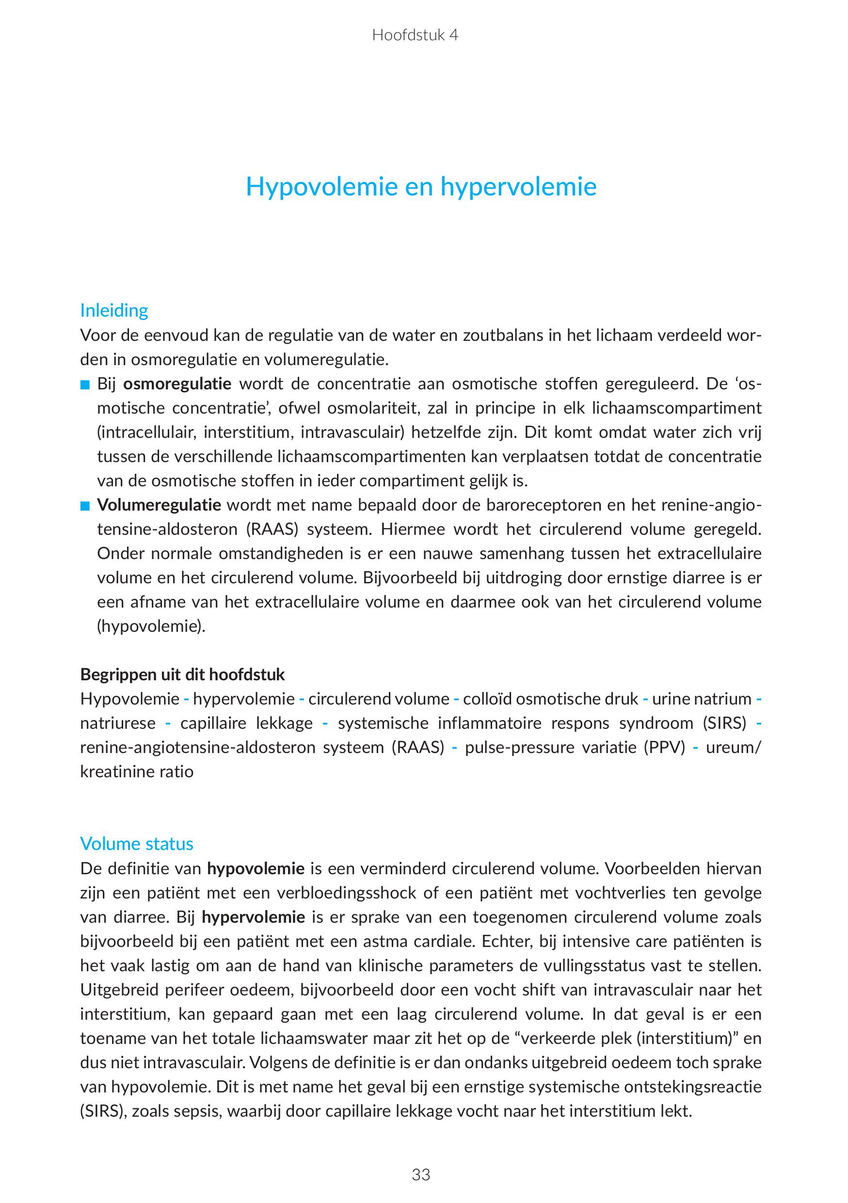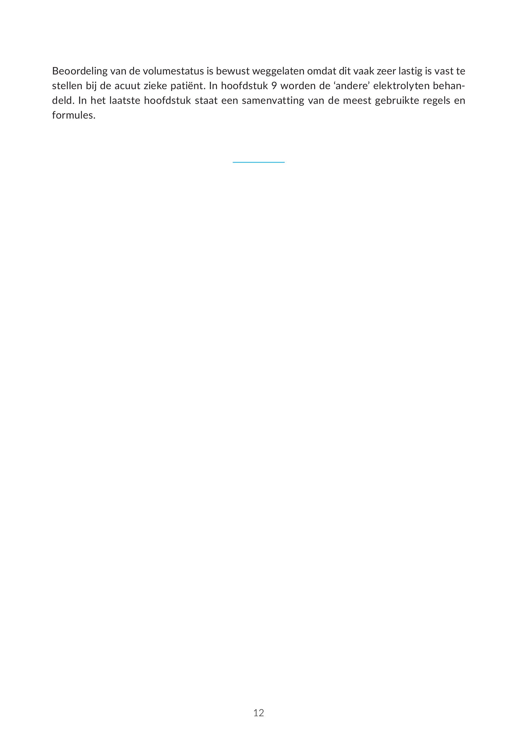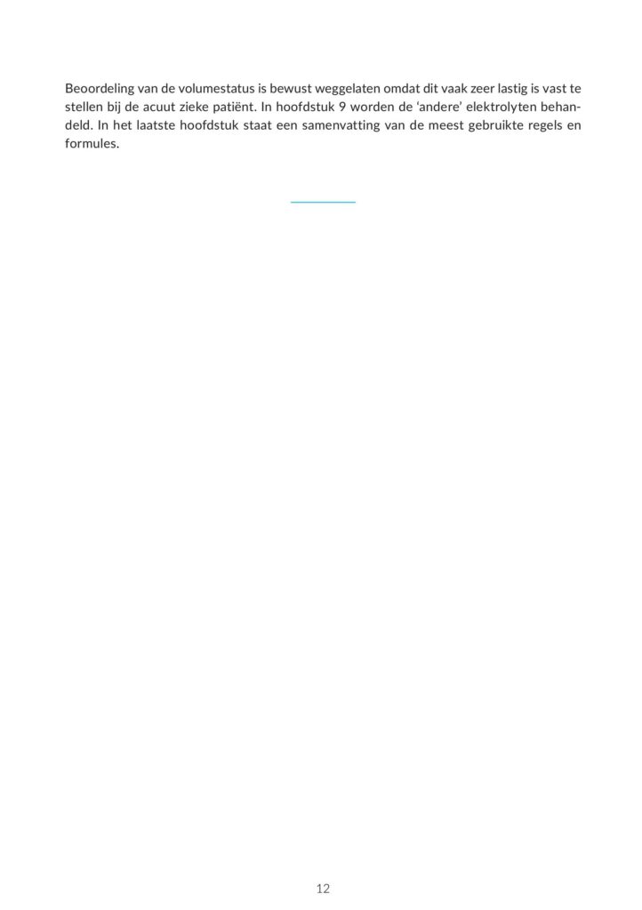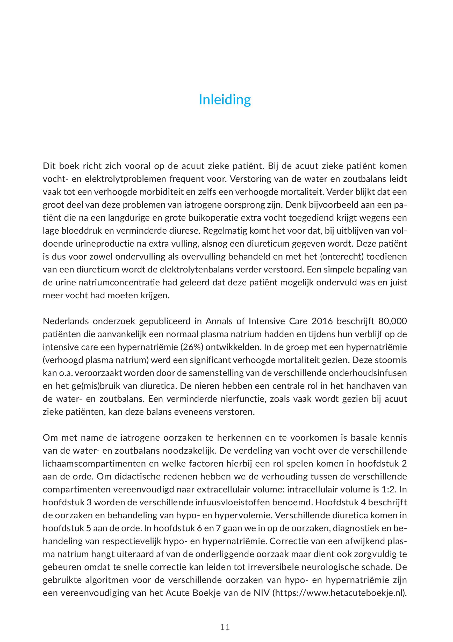 Dit boek richt zich vooral op de acuut zieke patiënt. Bij de acuut zieke patiënt komen vochten elektrolytproblemen frequent voor. Verstoring van de water en zoutbalans leidt vaak tot een verhoogde morbiditeit en zelfs een verhoogde mortaliteit. Verder blijkt dat een groot deel van deze problemen van iatrogene oorsprong zijn. Denk bijvoorbeeld aan een patiënt die na een langdurige en grote buikoperatie extra vocht toegediend krijgt wegens een lage bloeddruk en verminderde diurese. Vaak komt het voor dat, bij uitblijven van voldoende urineproductie na extra vulling, alsnog een diureticum gegeven wordt. Deze patiënt is dus voor zowel ondervulling als overvulling behandeld en met het (onterecht) toedienen van een diureticum wordt de elektrolytenbalans verder verstoord. Een simpele bepaling van de urine natriumconcentratie had geleerd dat deze patiënt mogelijk ondervuld was en juist meer vocht had moeten krijgen.